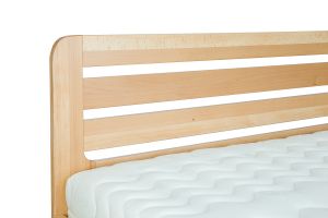 Buková postel LK189 se vyznačuje minimalizmem. Jednoduchý rám podopřený vysokými nohami, zdobený čelem, je čistou klasikou. Postel z přírodního bukového dřeva z útulní místnost, kde bude vystavena.