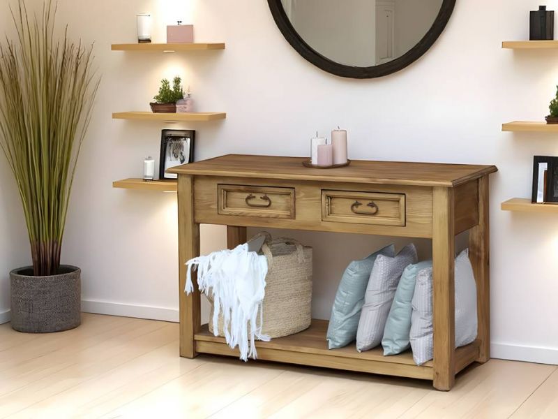 Kombinovaná skříň Mexicana je zhotovena v rustikálním stylu, který je velice útulný a nadčasový. Skříň je vyrobena z borovicového masivu, povrch je mořený a poté lakovaný ekologickým polomatným lakem. Pod nátěrem se rýsuje struktura dřeva.