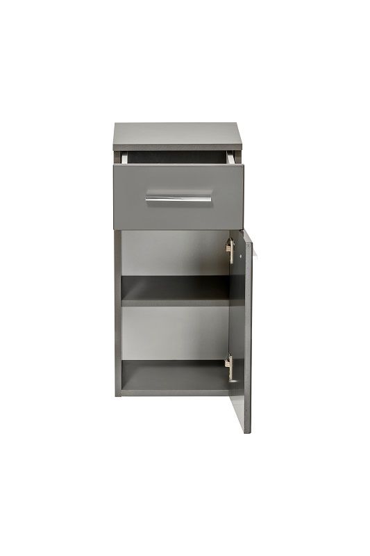 Tato skříňka má jeden šuplík a za dvířky se nachází jedna police.