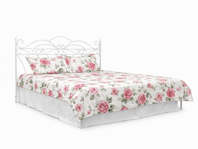 Kovová manželská postel Viking - barva bílá (viz. doplňující obrázek) je stylovou postelí, která dodá vaší ložnici romantickou atmosféru. Postel je vyrobená z kvalitní oceli o průměru 25 mm a ručně kovaných ocelových prutů o průměru 12 mm. Spodní rám je vyrobený z pevného ocelového profilu ve tvaru L, který má rozměr 40 x 40 mm a tloušťku 4 mm.