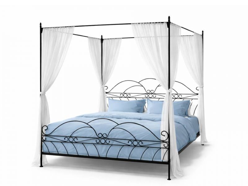 Kovová postel Viking s nebesy - patina zlatá (viz. doplňující obrázek) je stylovou postelí, která dodá vaší ložnici romantickou atmosféru. Postel je vyrobená z kvalitní oceli o průměru 25 mm a ručně kovaných ocelových prutů o průměru 12 mm.  Výška postele od země k roštu je 25 cm. Výška čela u hlavy je 112 cm, výška čela u nohou je 88 cm, výška s nebesy je 215 cm.