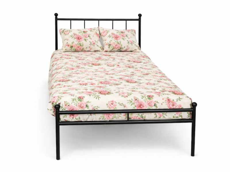 Kovová postel Kajtek - patina zlatá (viz. doplňující obrázek) je vyrobená z kvalitní oceli o průměru 25 mm zakončené ozdobnou koulí o průměru 40 mm. Výška postele od země k roštu je 26 cm. Výška čela u hlavy je 105 cm, výška čela u nohou je 40 cm. Bočnice ve tvaru L mají rozměr 40 x 40 mm o tloušťce 4 mm. Postel má stabilní konstrukci a nevrže. Na ocelové konstrukci je položený dřevěný rošt.