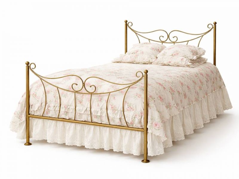Kovová postel Kornelie - patina zlatá (viz. doplňující obrázek) je vyrobená z kvalitní oceli o průměru 25 mm a ručně kovaných ocelových prutů o průměru 12 mm. Výška postele od země k roštu je 25 cm. Výška čela u hlavy je 105 cm, výška čela u nohou je 96 cm. Postel má stabilní konstrukci a nevrže. Na ocelové konstrukci je položený dřevěný rošt.