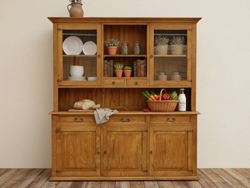 Kredenc Mexicana je zhotovena v rustikálním stylu, který je velice útulný a nadčasový. Kredenc je vyrobena z borovicového masivu, povrch je mořený a poté lakovaný ekologickým polomatným lakem. Pod nátěrem se rýsuje struktura dřeva.