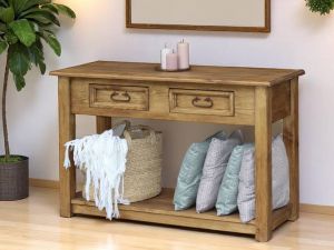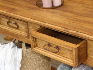 Odkládací stůl Mexicana je zhotoven v rustikálním stylu, který je velice útulný a nadčasový. Stůl je vyroben z borovicového masivu, povrch je mořený a poté lakovaný ekologickým polomatným lakem. Pod nátěrem se rýsuje struktura dřeva.