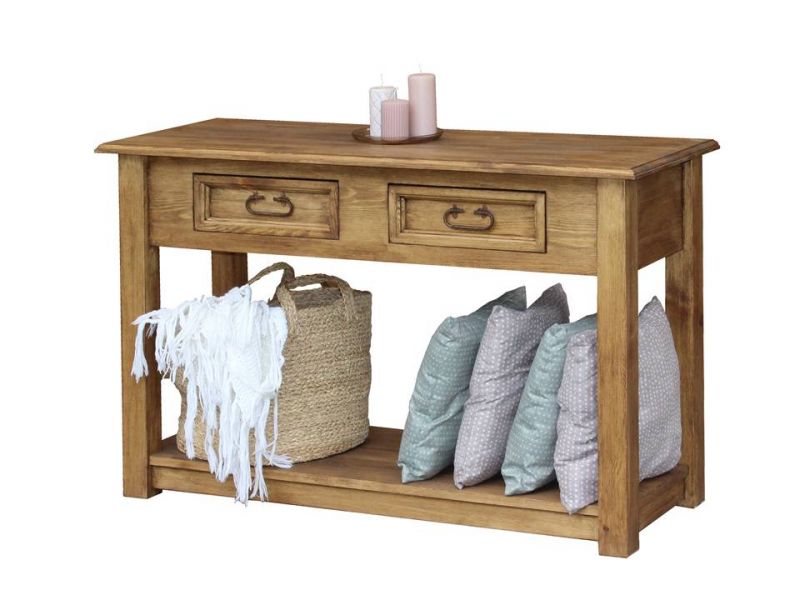 Odkládací stůl Mexicana WHITE je zhotoven v rustikálním stylu, který je velice útulný a nadčasový. Stůl je vyroben z borovicového masivu, povrch je mořený a poté lakovaný ekologickým polomatným lakem. Pod nátěrem se rýsuje struktura dřeva.