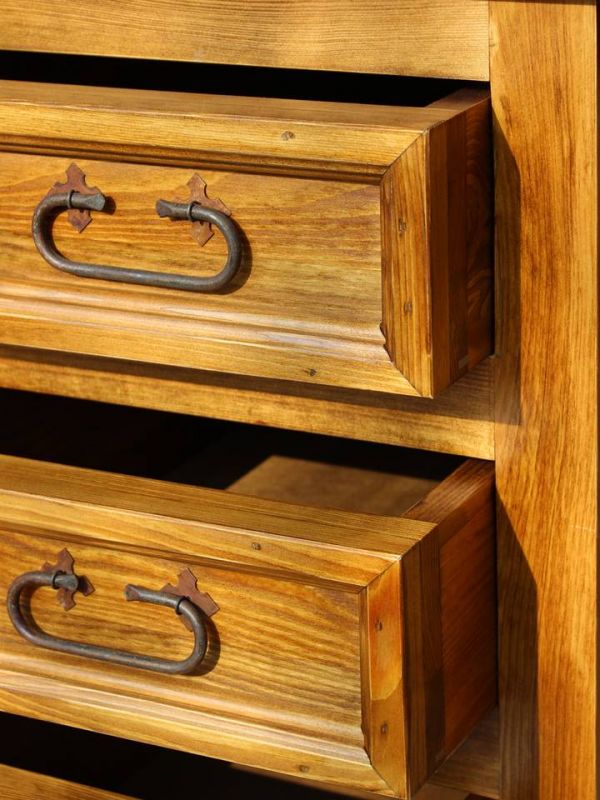 Všechny části kolekce Mexicana jsou dřevěné, pouze záda a dna šuplíků jsou z HDF desky.