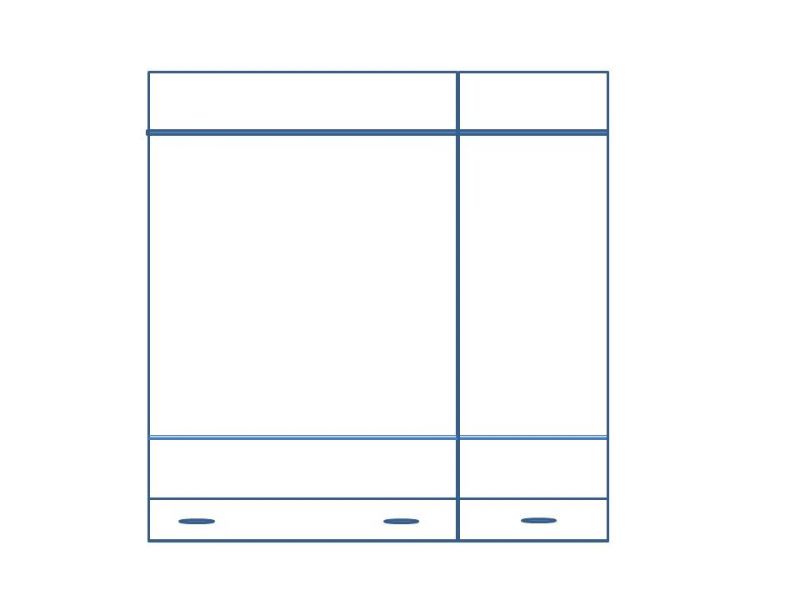 Skříň má v obou částech šatní tyč a vespod jednu polici. Ve spodní části skříně jsou 3 šuplíky.