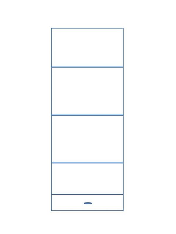 Skříň má v horní části šatní tyč a vespod jednu polici. Ve spodní části skříně je jeden šuplík.