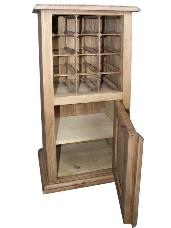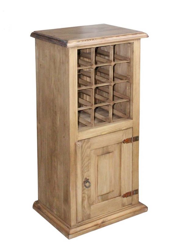 Skříňka na víno Mexicana je zhotovena v rustikálním stylu, který je velice útulný a nadčasový. Skříňka je vyrobena z borovicového masivu, povrch je mořený a poté lakovaný ekologickým polomatným lakem. Pod nátěrem se rýsuje struktura dřeva.
