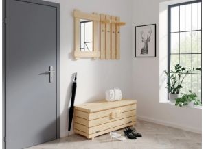 Věšák z masivu Hana v pěkném a stylovém provedení. Hodí se do každé předsíně a vstupních prostor určených k odkládání svrchního oblečení. Věšák je vyroben z borovicového masivu mořeného do odstínu olše. Jeho součástí jsou 4 věšáky a 1 odkladací police. Foto ilustrační.